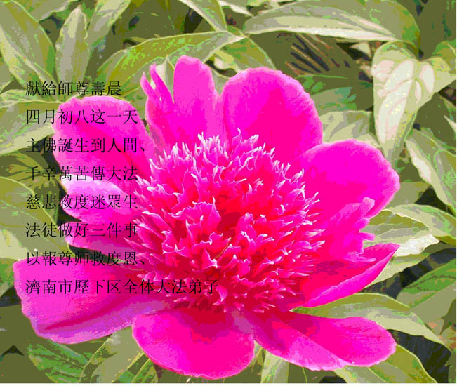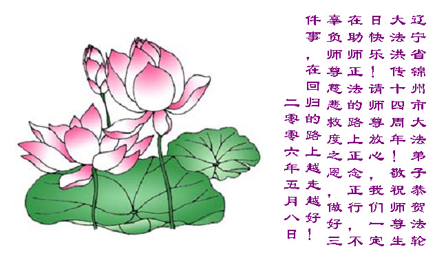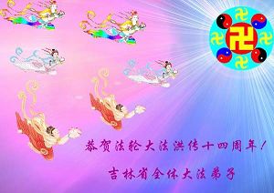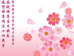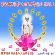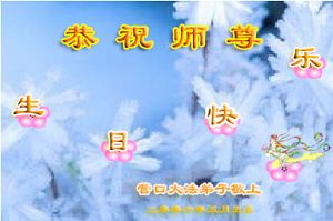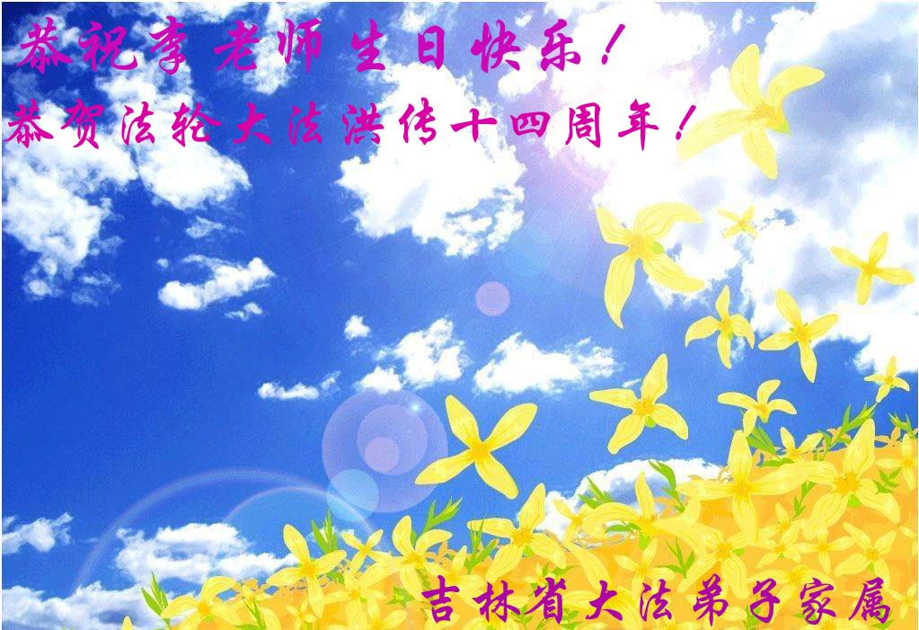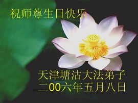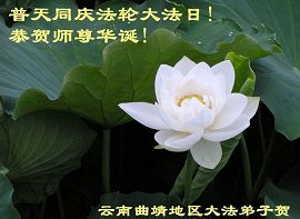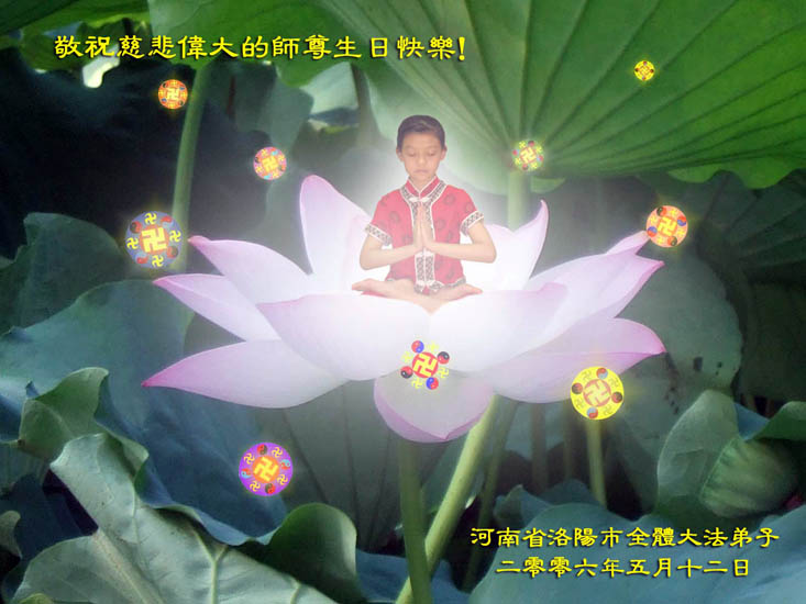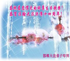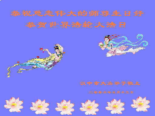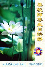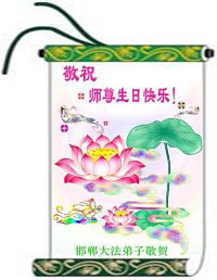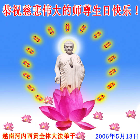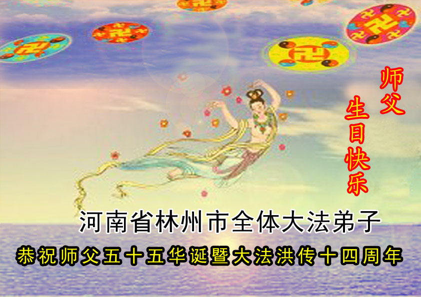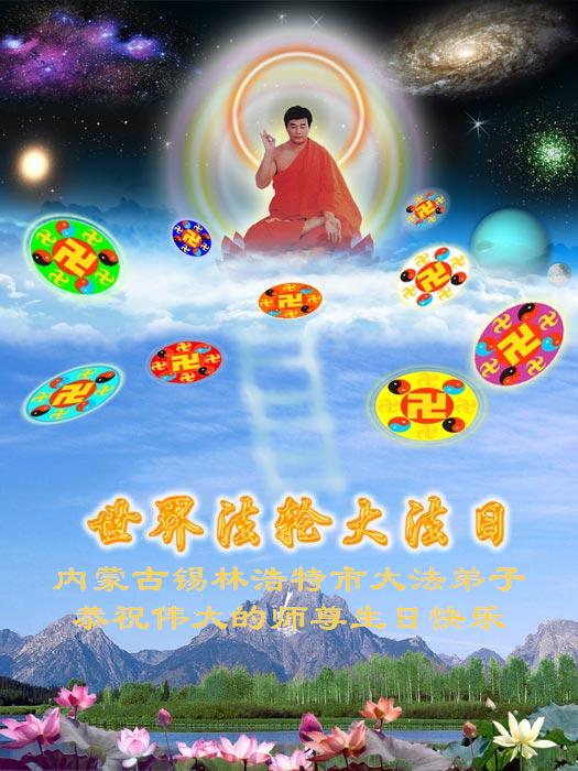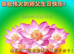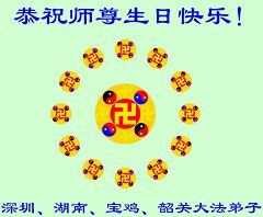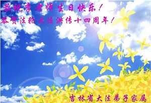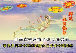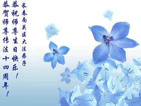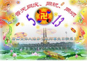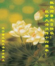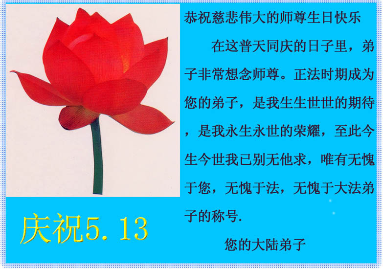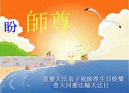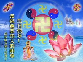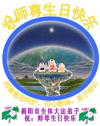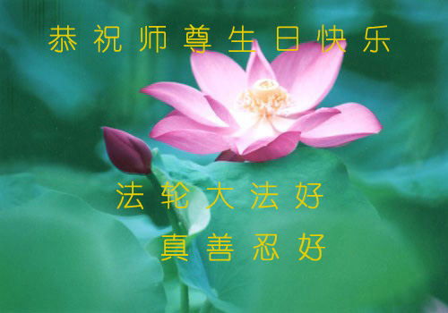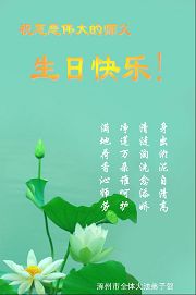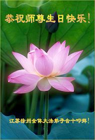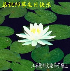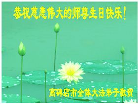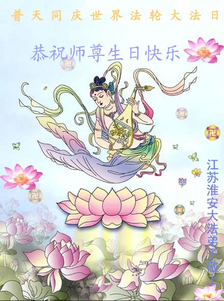 谨代表江苏淮安大法弟子向最慈悲伟大的师尊恭祝生日快乐!我们将努力做好三件事,救度更多的众生。