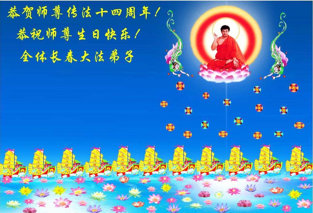 值此慈悲伟大的师尊生日到来之际,榆树市大法弟子恭祝师尊生日快乐!师尊您辛苦了!
