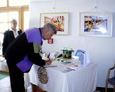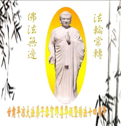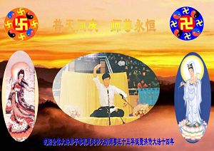 今借这普天同庆的神圣时刻,胶州弟子表达对师尊最崇高的敬意,弟子感谢师父的慈悲救度,在师父的慈悲呵护之中,弟子走过了腥风血雨的艰难岁月。如今,弟子成熟了,以后的日子里弟子会更加稳健的做好三件事,坚定的维护法。