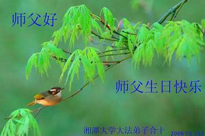 在师尊生日来临之际,太原大法弟子向慈悲伟大的师父问好,恭贺师父生日快乐。不辜负师尊对大法弟子的期望,做好师父交给的三件事,完成来时洪愿。