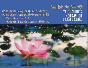 值此师尊华诞和世界法轮大法日之际,向慈悲伟大的师尊致以最诚挚的问候!