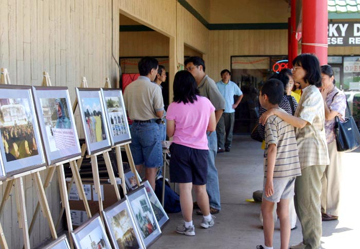 上午8点,中国城响起了法轮功的炼功音乐,休斯顿的法轮功学员以集体炼功拉开了庆祝“世界法轮大法日”活动的序幕。随后,学员们举办了“慈悲之路”摄影展,展示了:在中国大陆“7.20”迫害开始前、法轮功学员们炼功的情景,法轮功在台湾、及世界各地洪传,以及师尊在法会上亲自接见小弟子等图片;吸引了许多华人观看。
