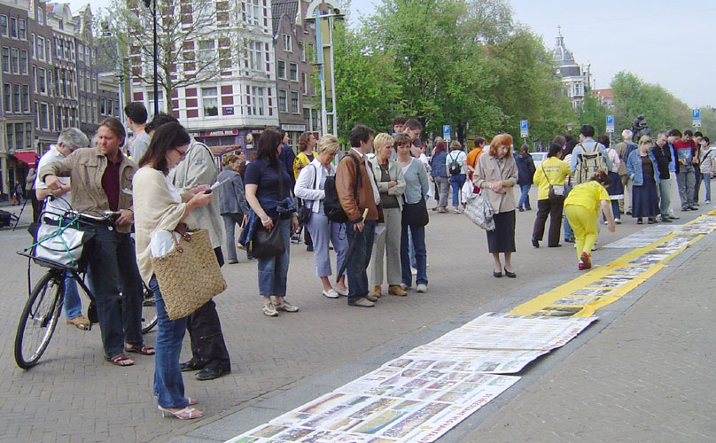 人们被祥和的功法所吸引,他们或者记下阿姆斯特丹炼功点的联系方式,或者索要带有功法演示的VCD光盘。有的人被发生在中国的残酷迫害所震惊,例如,中共劳教所、集中营大规模活体摘取法轮功学员器官,以及众多的法轮功学员遭受酷刑折磨。他们详细询问迫害为什么会发生,以及他们能做什么。学员告诉他们,“帮助法轮功的方式,就是广传真相,让更多的人知道中共迫害法轮功学员的残酷性和制止迫害的紧迫性。”一位阿姆斯特丹本地英文电台的节目制作人被深深的打动,他表示要做一个法轮功的专题节目,邀请法轮功学员進行专访。