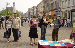 ![]() 人们在资料桌搜索所需大法资料 | ![]() 了解真相的人们来了一拨又一拨 |