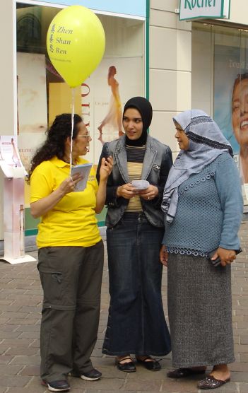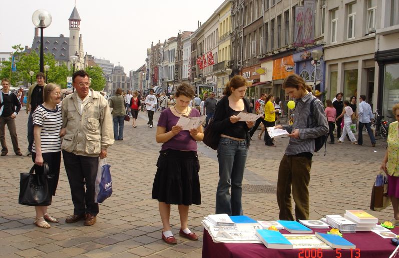观看功法演示和真相图片的人群来了一拨又一拨。祥和的功法和发生在中国的残酷迫害形成鲜明对比,人们不禁问:这样美好的功法,这是为什么要迫害?!学员进行了详细讲解。了解真相的人们,纷纷表示要求比利时政府官员帮助制止中共虐杀法轮功学员的恶行。