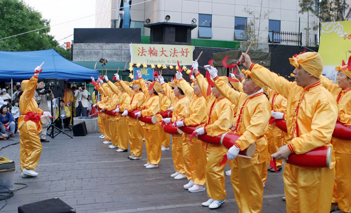 法轮功学员们通过发言和文艺表演,表达了对师父的无限敬仰之心;表达了紧跟师尊在正法的道路上更加勇猛精進的决心。学员们并向众多观众曝光了中共在集中营和劳教所里活体摘取法轮功学员器官等群体灭绝罪行。