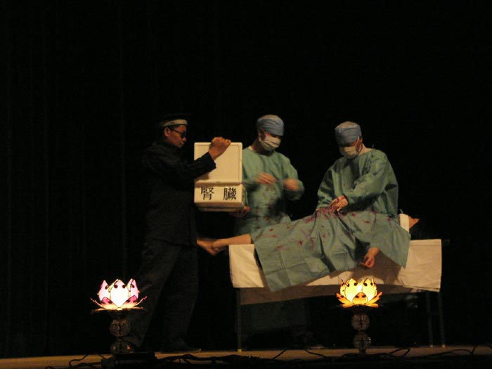 为揭露发生在中国的迫害真相,演示了法轮功学员遭中共活摘器官的情况。