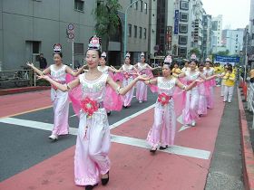 5月14日,日本法轮功学员汇集在东京涩谷,集会游行共同庆祝世界法轮大法日。欢庆锣鼓、精美唐装、仙女装表演和法轮大法功法展示等,吸引行人纷纷驻足观看,不少游人还用摄像机、照像机拍下法轮大法弟子展现的美好。