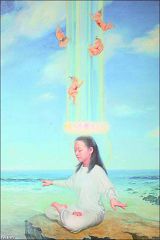 这是本月在雅芳图书馆展出的40幅作品中的一幅,描述法轮功修炼。