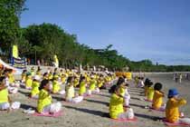 活动从当地时间下午四点开始,以集体炼功作为开端, 包括巴厘大法小弟子在内的大约120名学员参加了集体炼功。很多游客充满兴趣的见证着这个壮观场面。