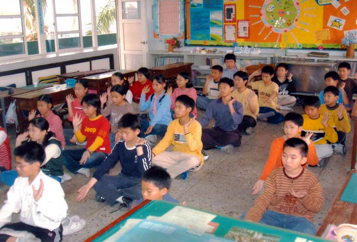 台湾彰化市泰和国小六年级甲班学生集体学法、炼功