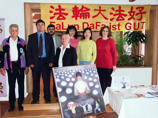 市长尤汉纳斯·穆勒(Johannes Mueller)在他的贺词中说,法轮功是中国古老的身、心、灵修炼方法。有5套简易而效果显著的功法,引导人们修炼宇宙大法“真善忍”。穆勒市长还说,“这个祥和的修炼功法在中国被扣上迷信的大帽子,法轮功修炼者从此被镇压,并遭受酷刑。”市长先生祝愿更多的人能从图片展中看到对宇宙大法、真善忍的信仰。