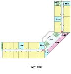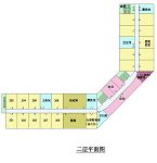 图四:女二所二楼平面图,淡黄色区域为迫害法轮功学员的监室。女二所监区主楼的二、三、四楼布局相同。二楼为一大队,三楼为二大队,四楼为三大队。每个楼层除普通监室外,储藏室(即“三角库房”)、厕所、心里咨询室(即“谈话室”)、走廊、狱警队长办公室、队长厕所等地,都是警察暴力迫害法轮功学员的场所。