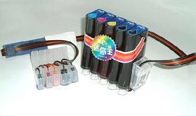 安装成品连续供墨(实际是半成品,内墨盒上无芯片,需要改装),要严格的按照产品的说明进行操作,要处理好几个关键问题:确保墨盒上的芯片“移植”成功;排尽输墨管线中的气泡;确保输墨管线在机内的长度适度。