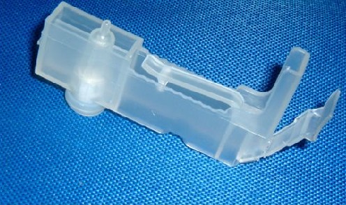 这种连续供墨的内墨盒设计的小巧玲珑,实际上根本不是“内墨盒”,而是5个出墨孔。实图如下: