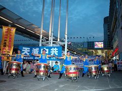 在星期六下午稍后时间,主办团体在铜锣湾及尖沙咀闹市都举行了退党长城活动。参加者除了在街头张起横幅,还在地铁站与码头旁边敲起雄壮的鼓乐声,让人感到天灭中共的历史性时刻即将到来。此外,法轮功学员也在星期六、星期日两天,先后在铜锣湾与尖沙咀码头举行揭露中共活摘器官暴行的反酷刑展。