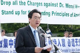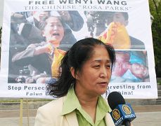 王文怡博士在集会上向所有关心和帮助她的善良民众致谢,她希望她的控罪被撤销,但更重要的是要把中国大陆法轮功学员遭受残酷迫害的危急状况让全世界都知道。
