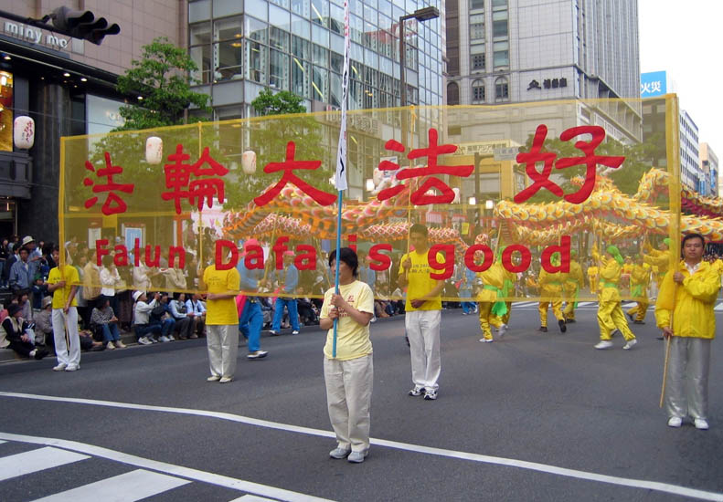 下午三点钟,一部份学员还来到中领馆前发正念并抗议中共对法轮功的迫害,学员们沿着中领馆对面的路边整齐的排开,发正念,针对中共活体摘除法轮功学员器官牟取暴利的罪行向中领馆人员用中文和日文宣读公告,呼吁彻底调查中国所有的劳教所、医院等有关部门,制止对法轮功学员持续七年惨绝人寰的迫害。