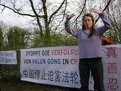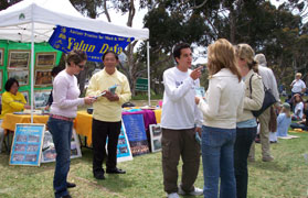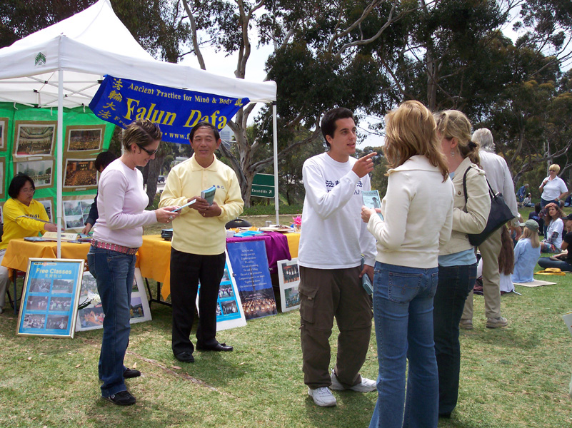 她过去和其中一位聊,说:“你不要相信我,因为我是炼法轮功的,我会说法轮功好;你也不要相信共产党,因为共产党不喜欢法轮功,所以它说法轮功不好。现在你遇到两种不同的意见,怎么办?我建议你从头到尾把法轮功的主要书籍--《转法轮》看一遍,再来说法轮功好不好,我尊重你的判断。”同时也跟他介绍了《九评共产党》。那位中国人说,他回去会把这两本书看完。