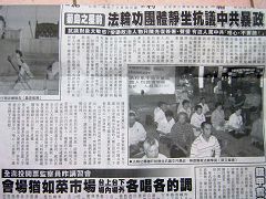 【明慧网2006年5月9日】2006年5月7日,台中县雾峰农工聚集来自全台湾各地数百名法轮大法弟子,参与向“可贵的中国人讲真相”学法交流会。在这一处师父曾经莅临讲法的大礼堂,朗朗的读书声,伴随多位同修分享他们传九评、促三退、讲真相时遇到的感人故事,与从中修去执著的心得,正念之场熔炼着每一位大法弟子,促使大家比学比修,把握这最后瞬间即逝的助师正法、救度众生的短暂时刻,将对中国大陆讲真相做的更好、更深入、更扎实。