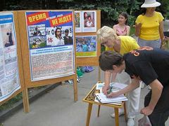 ![]() 被震惊的人们向法轮功学员了解真相 | ![]() 人们纷纷签名支持国际调查,制止犯罪 |