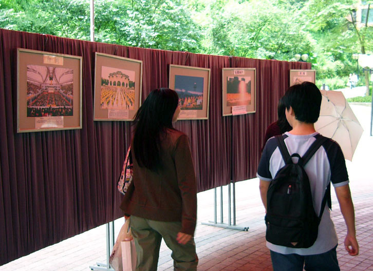 世新大学是培育台湾媒体界人士的摇篮,法轮功学员们都认识到向本校师生讲真相的重要性。在大约一半的展出时间里,有几位学员在展览厅中轮值,并且在展览厅内外表演功法、发宣传单、小书签、赠送自己用心折的小莲花,起到很好的效果。