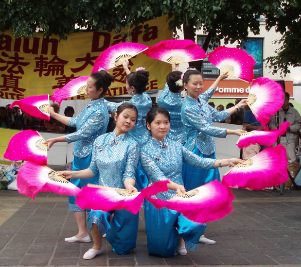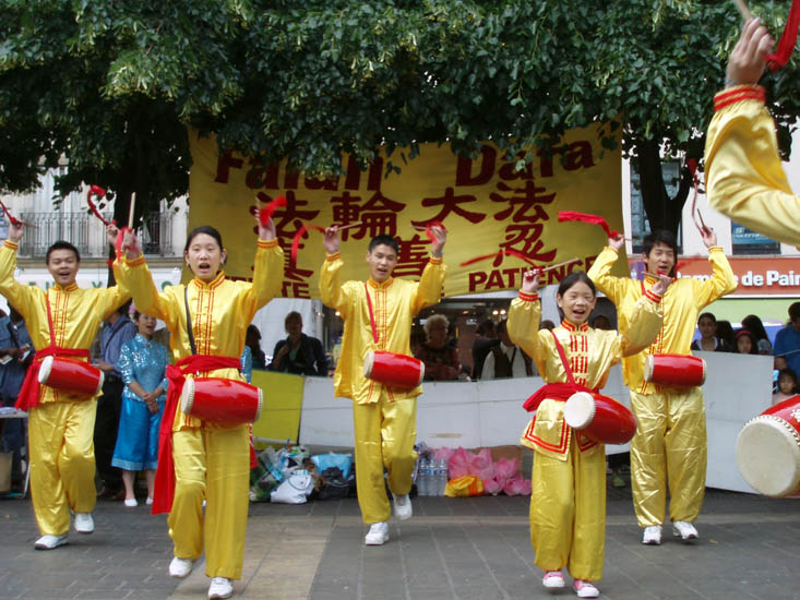 巴黎法轮功学员代表向观众介绍道:“今天我们为大家奉献多彩的中国传统节目,这些节目都是由法轮功学员创作表演的。”他向观众们介绍了什么是法轮功以及法轮功学员在中国正在遭受着野蛮的残酷迫害,呼吁大家声援法轮功。学员还用展板展示法轮大法的洪传和中共对法轮功学员的残酷迫害,游人看后纷纷表示声援法轮功学员,谴责中共的迫害。