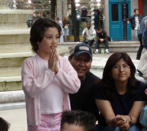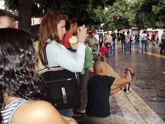 ![]() 观众用相机纪录精彩画面 | ![]() 法国女孩模仿法轮功炼功动作 |