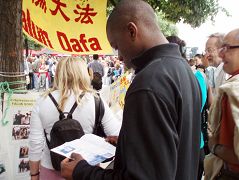 法轮功学员向游人们发放了大量的真相资料,了解真相的人们纷纷表示声援法轮功学员,他们感到非常震惊和愤慨,认为这么美好的功法在中国遭到迫害是不可容忍的。