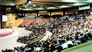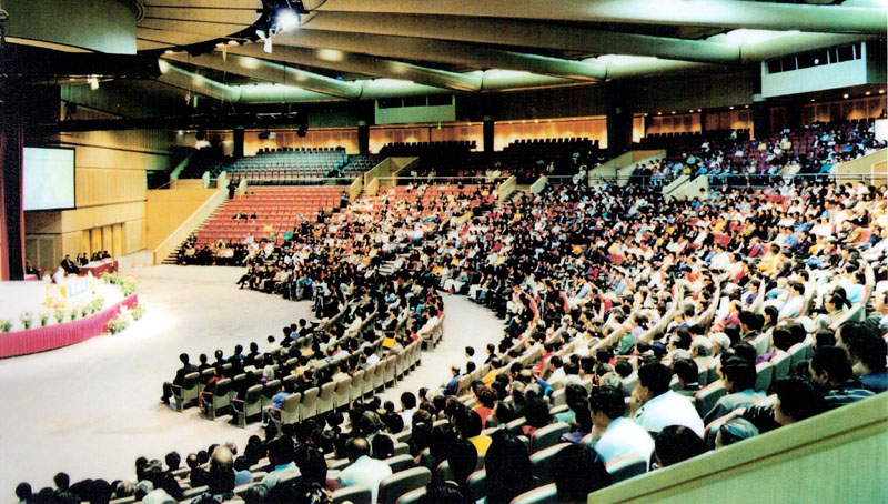 这时门外的中外记者又一次要求進会场面见师父,师父当时让弟子转达给记者,欢迎他们来会场,但是希望他们先听听学员的发言,对法轮功稍有了解之后再见面。于是有些记者進入会场就座,听取学员的交流发言,后来一位记者也得法了,成为了一名大法弟子。