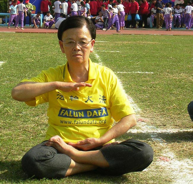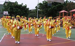 70几岁的婆婆参加校园法轮功功法表演
