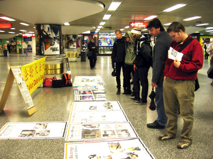 当一位学员递资料给一芬兰人时,他说他只信某某,不信这个。学员说:“我不是让你改变你的信仰,只是请你了解中共对信仰真善忍的法轮功学员的迫害真相。”这时旁边一位明白了真相的芬兰女士主动向他讲明学员的意图并劝说他了解真相。学员事后向这位女士表示真诚的谢意。