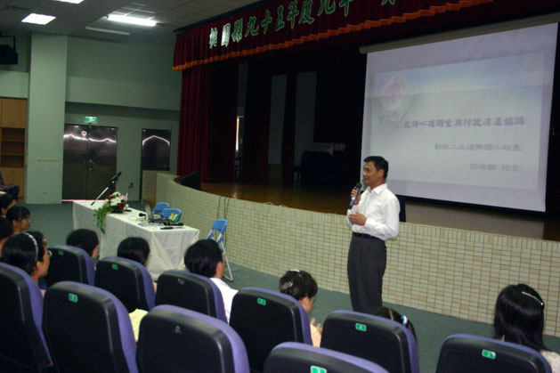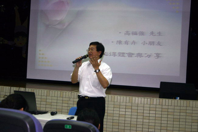 下午的讲座是由彰化县复兴国小许孝麟校长主讲,题目是“教师心理卫生与行政沟通协调”,许校长在推动品德教育方面不遗余力,他分享该校的实施成果和宝贵的实务经验外。更谈到他身为一个法轮功修炼者,如何在为教师着想、为学生着想的前提下,和全体教职员共同努力营造一个优质的学校环境。
