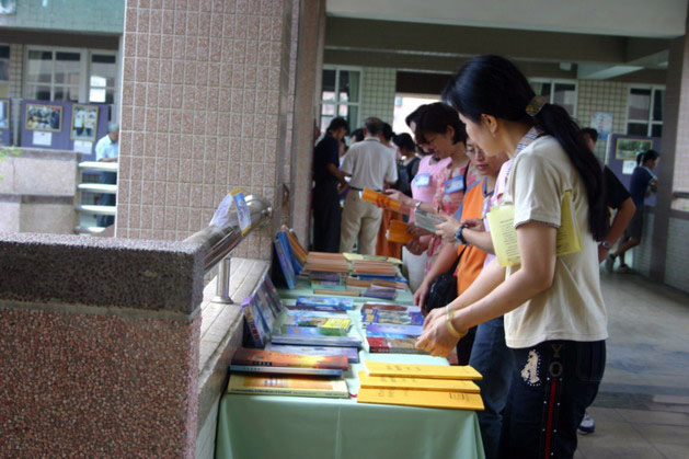 ![]() 正法之路摄影展 | ![]() 休息时间,研习参加者在认真了解法轮功书籍 |