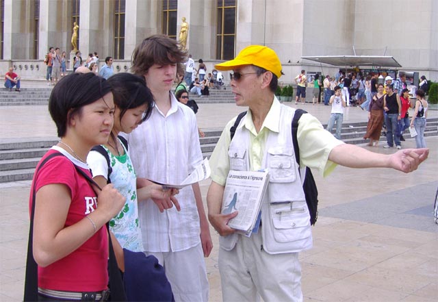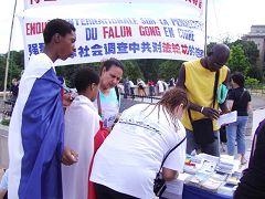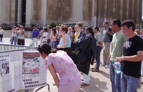 巴黎,自由、民主、人权的象征,艺术文化的圣地,它独特的人文精神使之成为世界旅游胜地,来自世界各地的游客会在巴黎人权广场上体会其独特的文化气息。几乎每个星期天,法轮功学员揭露中共活体盗取器官的暴行,已经成为巴黎人权广场的一道风景、人们关注的焦点。人们用正义之声在这里表达自己对法轮功的支持,对中共活摘器官的谴责。