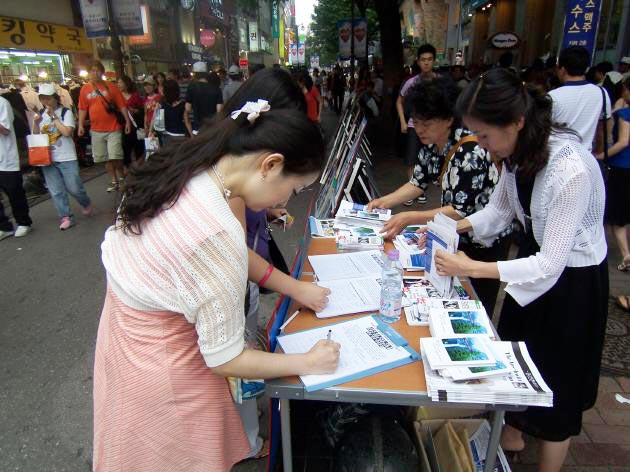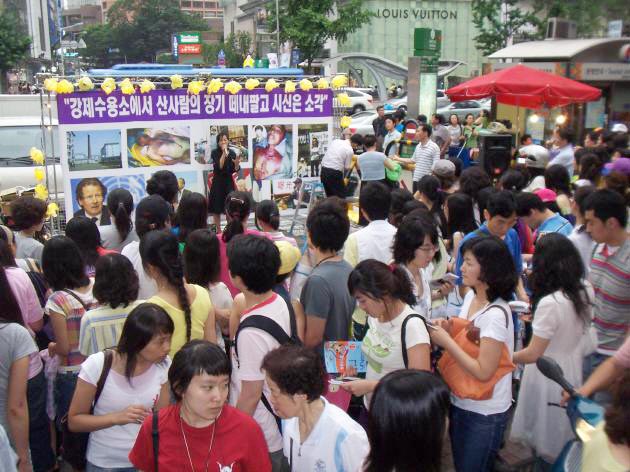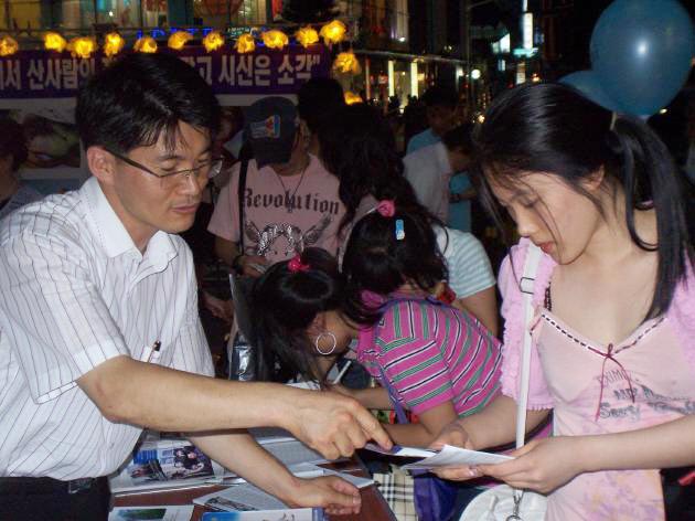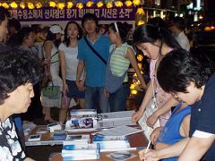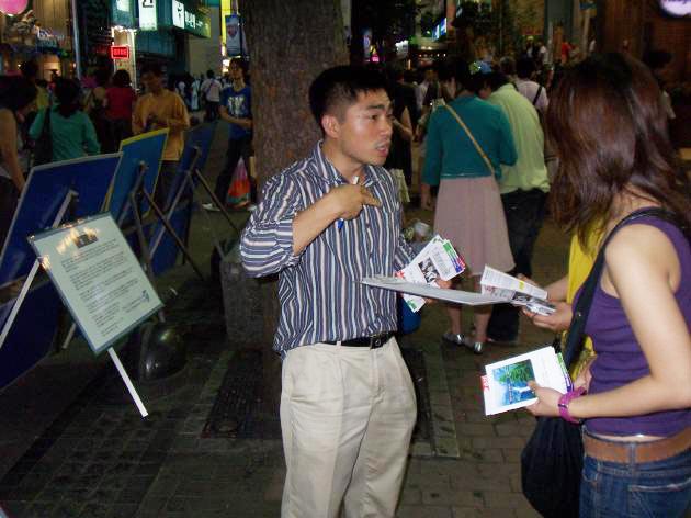 【明慧网2006年7月13日】2006年7月8日星期六傍晚,法轮功学员在韩国首都首尔最繁华的地段“明洞”举行了烛光悼念活动,旨在揭露中共盗取法轮功学员活体器官的暴行,悼念无辜被迫害致死的大陆同修。