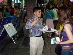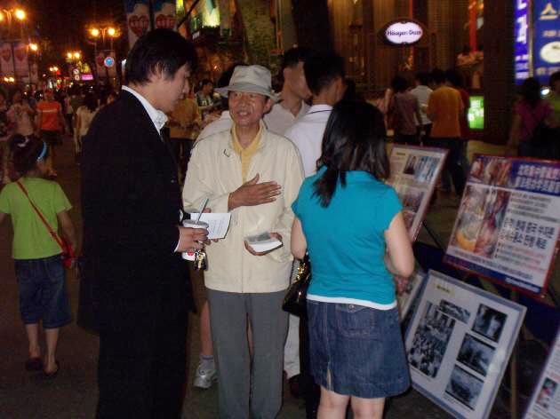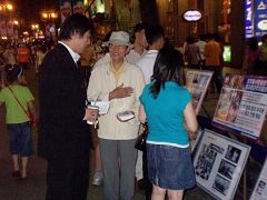 主持人呼吁人们,共同制止人类历史上这场最邪恶的迫害,解体制造无尽残酷暴行的中共;一起伸出援助之手,营救那些现在还被关押在集中营、劳教所内,随时面临被活体摘取器官的法轮功学员。许多行人表达了由衷的同情,并签名支持反迫害。