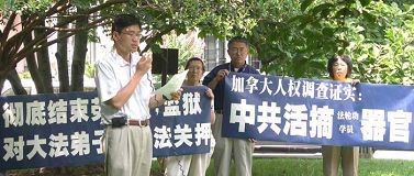 身为医生的法轮功学员庞玉滨在新闻发布会上说,“在今年四月中国器官移植中心的网站上,清清楚楚写着肾脏移植寻找供体只需两个星期,最长一个月。而在美国肾脏移植至少要等2年到7年。这意味着在中国存在着一个庞大的活体器官库。”