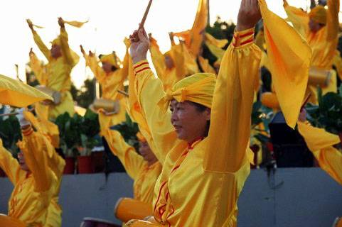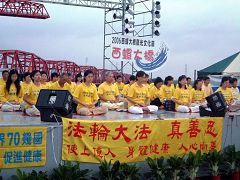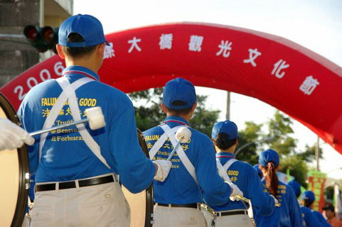 2006年7月7日的大桥文化节,一群法轮功修炼者应邀参与表演,展现出修炼大法的美好,他们的表演包括了腰鼓队、西洋鼓队、功法表演以及新唐人旗鼓队。