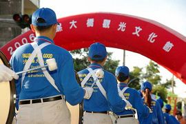 西洋鼓队的队员有的远从台北、嘉义、台南来参加,他们来自各行各业,有金融专家、电脑工程师、科学家、教授、医生、会计师、教师、高级行政主管等等。大家靠着发自内心纯善的力量,吹奏出祥和的乐章,传送真善忍的美好。值得一提的是,今天这支西洋鼓队,在接获大会通知要表演时,许多队员出国,在人手不足的情况下,云林区的法轮功学员号召团员训练,四天成军,他们的诚心感动了在场所有民众的心!
