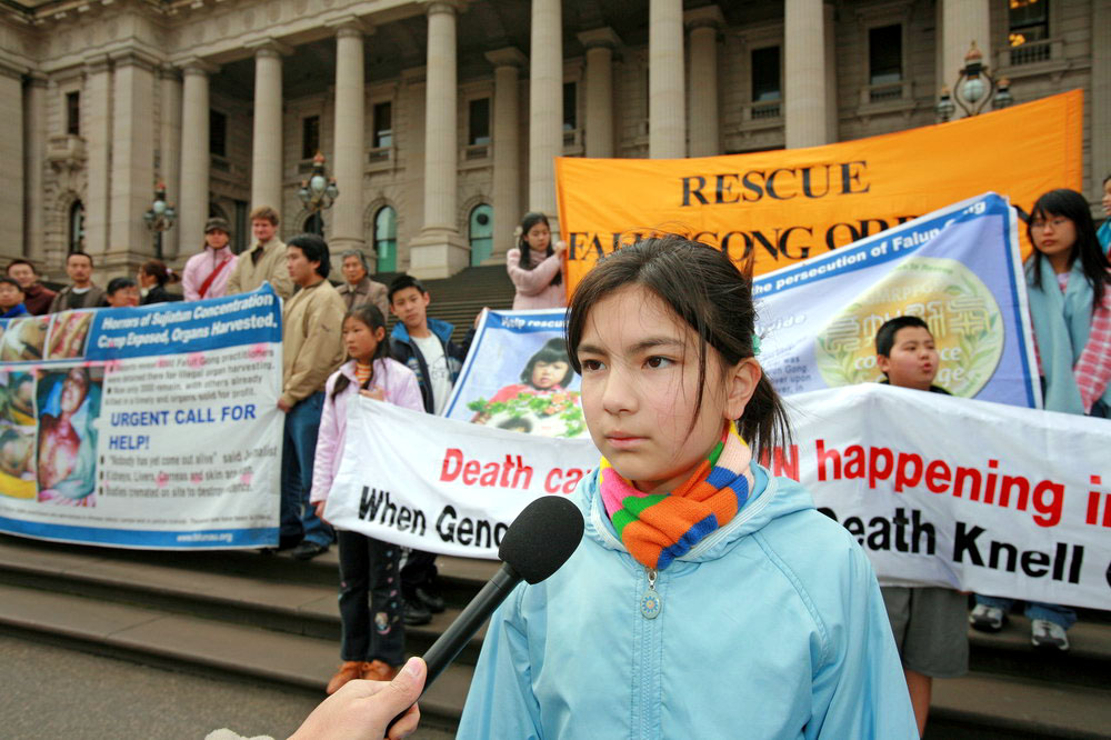 14岁的麦乐迪深知国内法轮功学员的处境之险恶,她的母亲曾铮,曾患有丙型肝炎,因修炼法轮功而得以康复,却因一封被上传网路的家信而多次被抓并被判劳教,后辗转来到澳洲;她的父亲,一个不修炼的普通人,也被牵连入狱,付款二十万人民币才得以释放。能够来到澳大利亚,她觉得非常幸运,更迫切感到要为国内的大法弟子以及被毒害的中国人做些事。