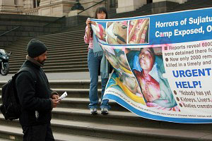 ![]() 游人了解法轮功真相 | ![]() 在街道上发真相资料 |