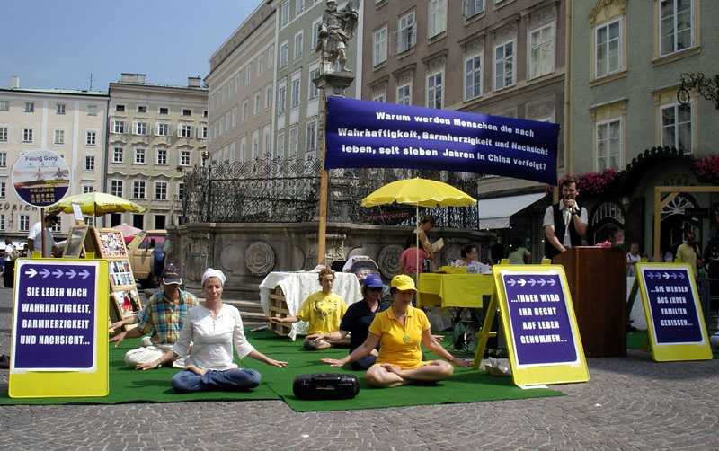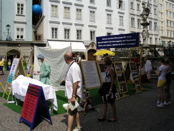 【明慧网2006年7月19日】到2006年7月20日,中共政权残酷迫害法轮功整整七年了。7月15日星期六,奥地利法轮功学员在莫扎特之城 ——萨尔斯堡举行活动,揭露中共对法轮功学员持续7年的灭绝人性的暴行。