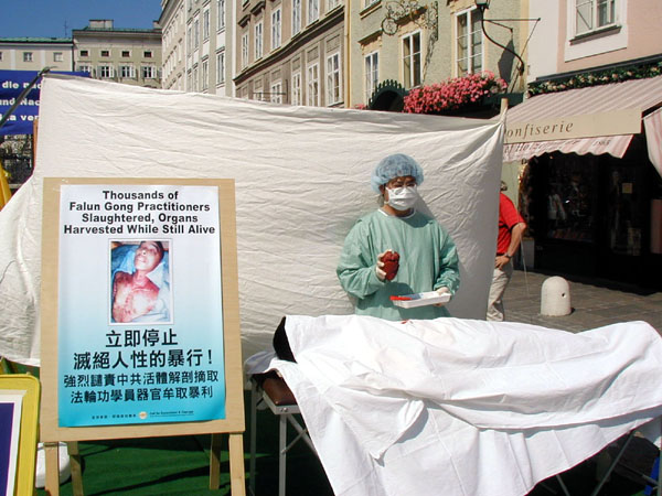本次活动是由奥地利本国和德国南部的部份法轮功学员共同举行的,包括法轮大法真相图片展、功法演示、反酷刑展、活体摘器官模拟演示,揭露中共政权贩卖法轮功学员器官的话剧等。