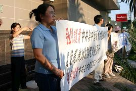 ![]() 法轮功学员在中领馆前抗议迫害 | ![]() 小弟子炼功 |