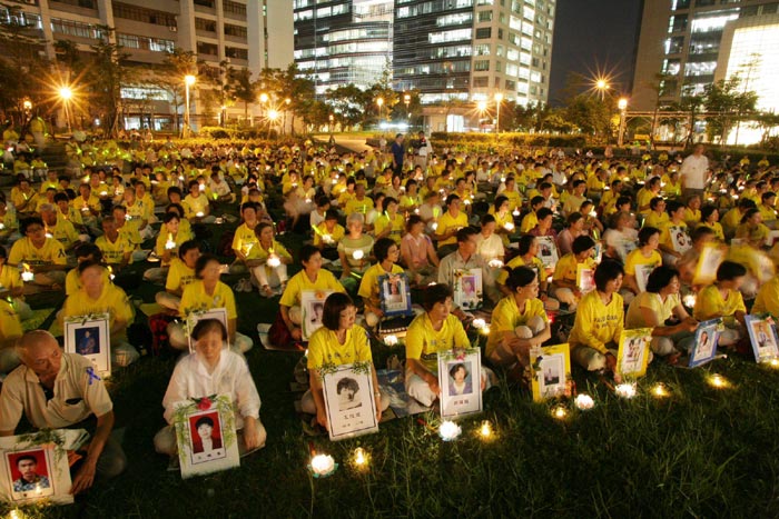晚上7点,为悼念被迫害致死的法轮功学员举办“正念良知 照耀寰宇”烛光悼念会,超过1200位的学员及民众到场参加。