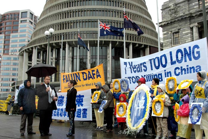 来自不同党派的三名新西兰国会议员也在集会上发表演说,表达对迫害的谴责和对法轮功人权的支持。绿党外事发言人凯思•劳克在国会外交委员会会议之前,特地赶来表示支持。