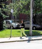 一周过去了,今天上午,我与另一同修一起到中领馆前抗议。到十一点多时,上周出现过的那辆黑色面包车又出现了。这回,车里坐着一男一女,把车停靠在对面马路边。接着,从车里下来一个女特务;她手拿相机快步走到中领馆门口对面的人行路上,举起相机故意朝向领馆门口,但很快就把相机转向我们。我旁边的同修早已做好准备,马上从挎包里取出数码相机,对准女特务就拍,一连拍了好几张,她的面目清晰可见。我那同修又赶紧拍下这辆车的车牌号。我一直在那里发正念,驱除邪恶。她知露馅了,就收起相机,快步钻進车里,因这两人心中有鬼,急匆匆的开车溜走了。