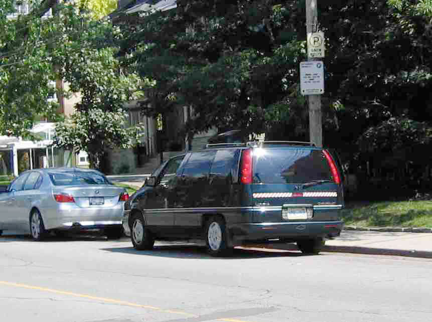 今年7月16日上午,我正在中领馆前,当我闭上眼睛做第五套功法时,一辆黑色面包车偷偷驶过来,横着停靠在离我1-2米的人行道边。我当时听到一些声响,便不由自主的把头稍微抬起,睁开眼睛。这时,映入我眼帘的是,坐在车里只有一个三十岁左右的男特务,他已移过身体靠着车边,并早已把车窗摇下。他一边近距离的看着我,一边用右手慢慢举起相机;当相机举过车窗时,我突然意识到,这个特务是准备给我拍照,以作为日后迫害我的证据。我当即恢复原来打坐时的姿势,继续做第五套功法。这样,我的帽舌刚挡住他的视线,他来不及按下相机快门,竟然十分恼怒并嚣张的用普通话对我说:“你站起来,我给你照!”我当即发正念,只听见这辆车灰溜溜的开走了!