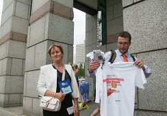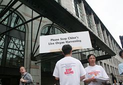 ![]() 医生们购买揭露中共活体摘取法轮功学员器官的文化衫 |
